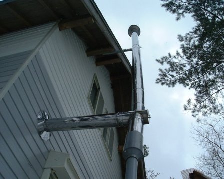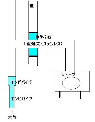 2重煙突は、断熱材が入っているため気化しているタール、木酢などをそのまま大気中に逃がすため、熱が放出される場所は、ほとんどストーブ本体となる 2重煙突は、1重煙突と比べると高価であるため、1重煙突を基本においてつくりました |