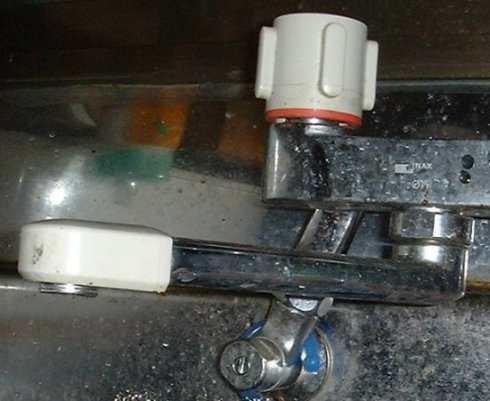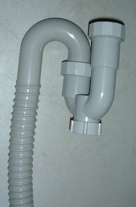 これも、寒冷地仕様で水抜き用(左の図参照)になっていますが、帰る時水抜きを忘れるので、すべて蛇腹の直線のものに変更しました、コンタクト、指輪など落とすともう見つからなくなる危険はありますが、友人に貸すこともありますので、変更しました。 | ![]() |