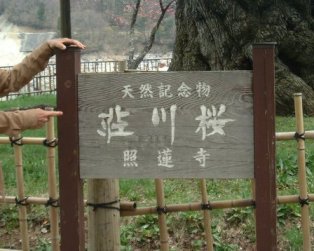 | 2002年4月27日 岐阜県指定天然記念物 指定年月日 昭和41年12月13日 指定理由 2本ともアズマヒガンザクラで5m余の大樹で樹齢400年と推定される 水没した中野地区の照蓮寺、光輪寺の庭にあった巨桜で初代電源開発 総裁高碕達之助氏のはからいにより重さ40tはあったと言う巨樹を昭和35年秋に現地に移植されたものである。 移植当時は、根が着くかどうか心配されたので枝をはらわれてまるで裸になった異様な姿あったが翌年春には見事に活着し年々葉枝が伸びて花が咲くようになり現在では、かっての両寺の境内にあったときのように美しい花を咲かせている 岐阜県教育委員会 荘川村教育委員会 |
