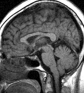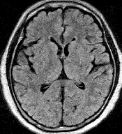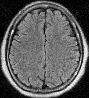 呼び込まれて診察室に入ると、Dr.Kは、まあどうぞと言うように私に椅子をすすめ、正面のパネルにMRIのフイルムを4枚貼り付けました。1枚のフイルムに約20コマ位の頭部の輪切り写真が写っていました。1枚は横から、2枚は上から、1枚は血管を写したものでした。左の写真は正常な人の頭部MRI写真の1コマを3種類見本に貼り付けたもので、私の脳みその写真ではありません。 私は、本やテレビでよく見る、この正常な人の写真を頭に描きながら目の前にある自分の写真を詳細に観察しました。私の脳みそは、元気でした。頭蓋骨の中が狭すぎると言わんばかりにぎっしりと詰まっていました。 「まったく異常ありませんね。」 と穏やかな話口でDr.Kは、説明を始めました。 眼の異常も、脳が原因で起こる場合は、両眼一緒に起こることは無く、私に起きた現象は、おそらく心臓が原因でしょうとのこと。また、頭痛や頭がすっきりしないという問題は、筋肉系に問題があり、疲れやストレスが考えられますとのことでした。 ただ一つ、気になったのは、上から写した写真の中に、ポツッリ針で突いたような白い点のある1コマの写真が有ったことでした。Drが全く異常は無いと言うのだから聞くのは止めました。と言うのは、数週間前のテレビで、若い(30代と思われる)女性アナが脳