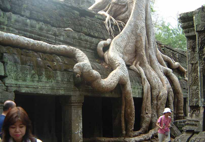 3月10日から、旅行社の企画した「世界遺産紀行」のツアーに加わりカンボジアのアンコールワットへ行ってきました。ついこの間まで内戦が続いていた国、事前に読んだ旅行記や「在カンボディア日本国大使館安全情報・海外危険情報」などから、まだ旅行環境が十分整っていないような気がして身体の弱い家内を連れて行くのは止め私一人で参加しました。 この旅行に参加するまで、私の世界三大仏教遺跡アンコールワットに関する知識は、以前訪れたインドネシアのボルブドール遺跡(これも世界三大仏教遺跡)を思い浮かべる程度のものでした。しかし、実際に訪れてみて、そのスケールの大きさに驚かされました。 今をさかのぼる事約千年、アンコールワットのあるシェムリアップは、インドシナ半島の大部分とマレー半島の一部までを領土とした一大帝国クメール王国の王都として栄え、その規模は東京23区にも匹敵する広大なもので、東南アジアの道は全てアンコール王都に通じていた言われるほどだったそうです。そして、このシェムリアップ地域には数百を超える大小様々な寺院が建立され、中でもアンコールワットは、都のシンボル的存在でもあったと言うことです。シェムリアップは、日本で言えば奈良の都に当たり、アンコールワットは東大寺というところでしょうか。 今回の旅では、あまりにも興味のある被写体が多く、600枚に近い写真を撮ってきました。しかし、今から私がお話しようとしている旅物語は、あくまでもカンボジアという国の現状について全く知識の無い私がシェムリアップという一地方観光地で見たり聞いたりした出来事であることを念頭においてお読みいただければと思います。