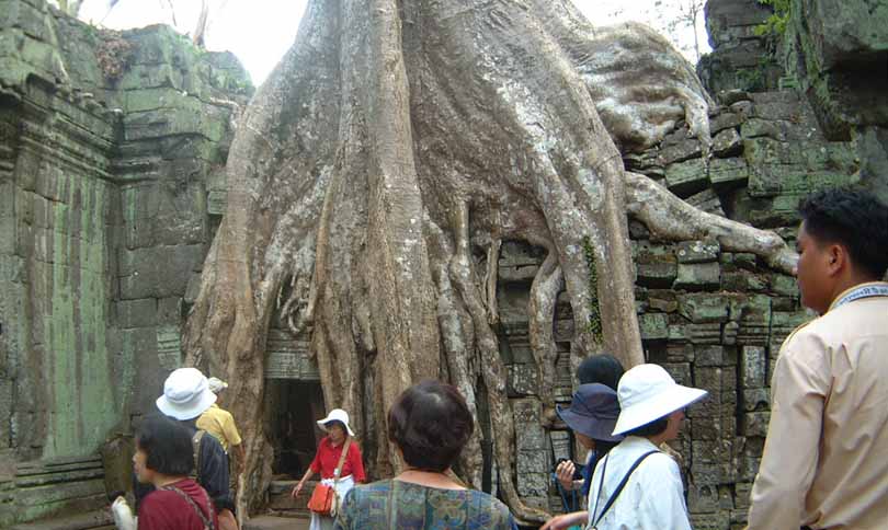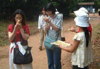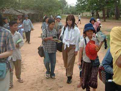 興味があり、途中で数人の若者に声をかけてみました。 一人は学生で、プノンペンで現地の大学と交流、アンコールワットには昨日着いて一週間ほど滞在とのこと。ゲストハウスには、こうした若者がたくさん泊まっていて、情報交換をしたり、気が合えば一緒に歩いたり楽しいですよと言う。 また一人は、IT関係の技術者で、一仕事終わったので3ヶ月の休暇をもらい、1月終り頃日本を出て東南アジアを回ってきたが、この後は、アメリカへ飛ぶと言っていました。 この他にも言葉を交わした若者はたくさんありましたが、度胸がいいと言うのか、自由奔放と言うのか私たちとは違う世界の人達のような気がする反面、彼らの生き方を羨ましく思う面もありました。こう