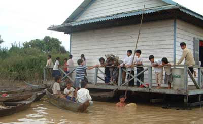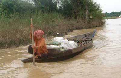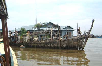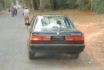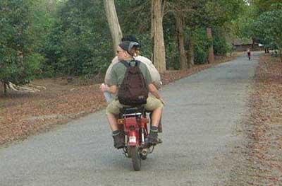 「税金を払っていない車はナンバーがありません。税金を払うと付けてもらえます。来年からは、全部税金を払わなければいけなくなりますが、現在は半々くらいです。」 と言う。 税金を払わないくらいですから、倍賞保険など言うに及ばず(私が勝手に判断するに)で、事故でも起こされたらやられ損ということでしょうか。保険制度がまだ普及していないのかも知れません。 聞いてみませんでしたが、私たちの乗っていたマイクロバスはどうだったのでしょう。無保険車の可能性が高いような気がします。 シェリムアップの街で見かける乗用車の数はまだ少なく、観光客が利用できるタクシーがどれくらいあるのか分かりませんが、バイクタクシーがたくさん走っていて結構繁盛しているようでした。路線バスが走っている様子はなく、ホテルから5キロから10キロも離れた広大な森林の中に点在する遺跡を見て回るためには乗り物に頼るより方法がありません。