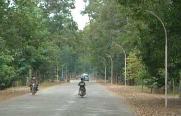 先ず第一に驚いたのは、昨夜真っ暗だった道路沿いに立派な街路灯がずらりと並んでいるではありませんか。よく見ると電球が付いていません。最初は、まだ工事中でこれから整備されるのだと勝手に判断していましたが、これは大間違い。ガイドの説明では、この街路灯は一年以上も前に作られたものですが、今までに使われたのは、昨年暮れに中国の国賓が来訪の時一度だけとのこと。電力事情の悪いこの国では無用の長物になってしまっているようでした。 電球は外して保存されているのかどうか分かりませんが、それにしてもところどころ思いついたようにぽつんと電球のついた街路灯があるのは何故でしょうか。 ひょっとすると誰かが外して持って行ってしまったのでは、などと考えながら前を走っている車を見ると、また驚いた。ナンバーが付いていない。その前を走っているバイクにもナンバーが付いていないで