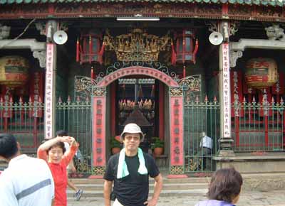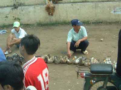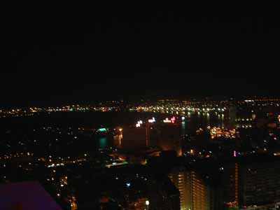 このバイクの流れは、決して止まる事がありません。大きな較差点にはロータリーや信号がありますが、殆どの交差点には信号は有りません。バイクや車、中には自転車も混じってどんどん交差点の中へ流れ込んで行きます。交差点には横断歩道もありますが、バイクや車は絶対に止まってくれません。私たちのように交差点毎に信号があり、歩行者優先の国からきた人が先ず戸惑うのは、道路の横断です。バイクの流れは留まることなく流れ、歩行者が待っていようが、横断中であろうが、絶対止まってはくれません。 歩行者は、バイクなど全く無視して渡り始めればいいのです。丁度水の流れている川を渡る要領です。バイクは、歩行者の速度と進行方向を計算しながら上手に避けて通り過ぎてくれます。渡り始めたら同じ速度で渡りきってしまうことがコツで、途中で止まるとオートバイも計算が狂ってぶつかって来る可能性があります。滞在中に交通事故を一つも見ませんでしたから、この国ではこれが最適の交通ルールなのかも知れません。 夜の街がまた壮観。エアコンの無い家の多いこの街では、夜になると涼を求めて皆外へ出てきます。そして街の中心部はアベックの乗ったバイクで埋め尽くされ、彼らは当て所も無くバイクの流れに乗って走り回っていました。中央分離帯や道路はしの縁石には、走りつかれたアベックがバイクを止め寄り添って腰掛けている姿が延々と続いていました。正に壮観の一言。
