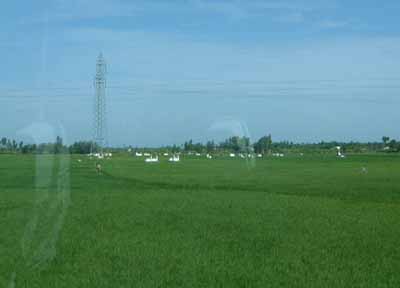 ミトー市までの国道1号線沿いは、すでにメコンデルタの中なのか、延々と水田が広がっていました。水の絶える事の無いこの地域は、米の