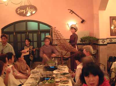 今回の旅で、私が期待していた楽しみの一つが、アオザイを着た女性たちが優雅に歩いている街の風景でした。「アオザイを着た女性はほんとうに綺麗だよ」と皆が言うし、ガイドブックや本などの写真でもアオザイを着た女性が街を歩いている姿やバイクに乗っている姿が必ず載っていました。 到着するまで、インドの女性が殆どサリーを着ていたように、ヴェトナム女性も日常的にアオザイを着ているものだと思っていました。しかし、ホテルの中でも、街に出ても、アオザイを着た女性は全く見かけません。 現地のガイドにたずねてみると 「今は学校が夏休みですから。」 と言う。 学校の夏休みとどういう関係があるのか直ぐには理解できず、もう一度たずねると、 「アオザイは高等学校の生徒が着ていて、登下校時には白いアオザイを着た女子高校生が町中に溢れ華やかですよ。」 と言う。 レストランや土産物屋のように観光客の出入する場所にはアオザイ姿の女性を見かけることもありました。しかし、皆、観光客用というか日常的ではないと言うか、私がイメージしていたようなアオザイ姿とは程遠いものでした。