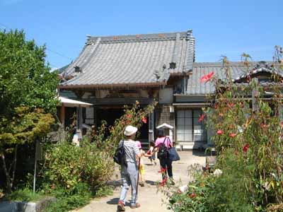 この正法禅寺には、開山の鳳山仙麟禅師が駿府で修行中、今川義元の人質だった徳川家康を救出し、70日間世話をしたと言う逸話が残されています。 機嫌を取り直した孫を激励して次の、番外西方寺に向かいました。西方寺は、正法禅寺から更に坂を登った裏側にありました。この寺は、「月山・篠山」と呼ばれ、土佐国幡多郡月灘村の元月山大勢至菩薩と、伊予国南和郡一本松字正木の元篠山大権現十一面観世音菩薩を奉安しています。この2体の菩薩は、本四国巡礼の際には必ず参拝するものだそうです。 さぁ、いよいよ知多四国八十八ヶ所巡拝最後の寺になった医徳院です。墓の中の道を港側に少し下った所に医徳院がありました。この寺は、保育園を経営しており、門は、寺と言うよりどこかの病院の入口と言った感じのモダンな印象を与える佇まいでした。 ツツジ、アジサイ、ジンチョウゲ、ボケと、季節の花がいつも咲いていて四季のよく分かる境内には、