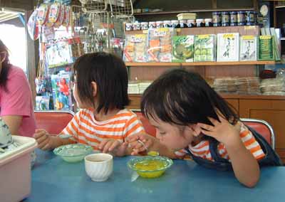 ご本尊の薬師如来は、1メートル30センチの木造坐像で、家内安全・病気平癒・身体健康を祈願すれば、米寿まで生きることができると伝えられ、別名「八十八(やそはち)長寿薬師」と呼ばれています。また仏閣にしては珍しく狛犬があるのもこの寺の特徴です。 ご記帳所で、200円を払って朱印帳にご朱印を頂き、これで、2年半かかった新(知多)四国八十八ヶ所、番外十ヶ所を入れ108寺の巡拝も満願となりました。 この篠島には、「篠島八十八ヶ所島弘法」と言って、島を一周する「弘法道」と呼ばれる道路を歩きながら弘法大師の石造八十八を巡るコースがあります。明治末から大正初期にかけて造られたものとのことですが、この道を辿って見るのも一興かも知れません。 帰りは港まで下り一本の道、孫達は汗を流しながらも足取りは快調。途中で一休みのために寄った土産物屋では、日頃アイスクリームやチョコレートの大好きな孫たちも、一斉に声を揃えて「かきごーり」と日本伝統の味を所望。やっぱり一汗かいた後は、カキ氷に限ります。 定年になって、西国三十三ヶ所、新四国八十八ヶ所を回り終え、さて、次はいよいよ本四国八十八ヶ所巡拝ということに意を決し始めているところです。何時からのスタートになるか分かりませんが、今度は距離的に遠い場所でもあり四国一周という長距離の巡礼にもなりますので、じっくり構えてスタートしたいと思っています。