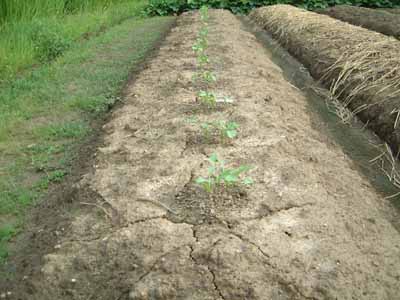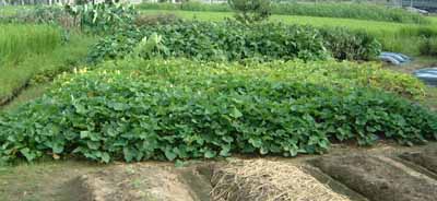 猛暑に悩まされた今年の夏も終り、ここ数日めっきり秋らしくなり朝夕は薄ら寒いほどになって来ました。ほどほどの雨に恵まれ秋野菜の播種を終えました。 ![]() 【白菜】 白菜の種は、毎年9月初旬ポットに播き、20日頃に畑へ移植します。種は、1つのポットに3粒づつ播き、成長に従って間引きし良い苗を1本残します。 冬の鍋物には欠かすことのできないこの野菜、私の冬野菜の本命で、夏のスイカとともに友人宅訪問の時の手土産にもなります。 ![]() 【大根】 大根もやはり冬の味覚。鍋物におでんに大活躍の野菜です。 大根は、私が発案した独特の育て方をします。普通は一列に種を播き、間引きししながら一定間隔に育てる苗を残しますが、私のやり方は、30〜40センチ間隔に3坪づつ種を播きます。そして、間引きはせず3本全部を育て上げてしまいます。同じ面積で3倍の収穫を得る事ができます。1本にしてもしなくても大根の大きさはあまり変わらないようです。かえって3本が支えあう事で真っ直ぐな大根ができるような気がしています。 ![]() 【人参】 これは、私にとって難しい作物で、いつも失敗しています。発芽するまでは水分を切らすわけには行かず、その上半分以上が発芽しません。また病気が出て立ち腐れしてしまうこともあります。 乾燥しないように、播種後は藁をかけてあります。昨年は、濡らした新聞紙をかけるといいと言うので試して見ましたがかんばしくありませんでした。 今年は米国産の人参を播いてみました。今のところ順調に発芽しているようです。 ![]() 【ほうれん草】 目下順調に発芽。 酸性土壌を嫌う作物なので、しっかり苦土石灰を散布して土壌を中和しておきました。 これも米国産の種。ポパイが食べていたほうれん草と同じかも・・・。 ![]() 【葱(ネギ)】 今年は、苗を買った園芸店の教えてくれた通りに植えてみました。 溝を掘り、苗を溝に植えますが、何時もは、植えて根元に薄く土をかけ、その上に藁を敷いていました。ご近所の農家の方もそうしておられるようです。 しかし、園芸店の言うには、苗は畝に持たせかけ、根元には土をかけてはいえないし、藁も敷いてはいけないとのこと。この方が病気も出ないし株分かれもいいと言う。根元を乾燥させると古い根が枯れて、新しい根がでてくるそうです。 不安な気もしますが、今のところ言われた通りにしています。 今年は、ダニの発生が多いので根元には殺虫剤オルトランを多目に散布しました。これも園芸店のアドバイス通りです。 ![]() 【さつま芋】 昨年と同じ金時。今収穫時期です。 順調に生育。焼芋の季節が楽しみです。 ![]() 【黒豆】 丹波の黒豆を作り始めて3年になります。 粒が大きく味の良い丹波の黒豆は、湯で豆にして良し、煮て良し。私の大好物です。 目下順調に生育中。 ![]() 【里芋】 昨年は不作でしたので、今年は鶏糞をたくさん混ぜて耕しました。そのせいか育ちはたいへんよく正に繁っているという感じです。 結果は掘ってみないと分かりません。 今年は、雨が少なかったせいもあり、野菜は全般に豊作でした。冬の野菜も、大きな台風がこなければ万万歳。寒い冬の夜、自分で作った野菜で食べるすき焼きや鍋物はまた格別です。
