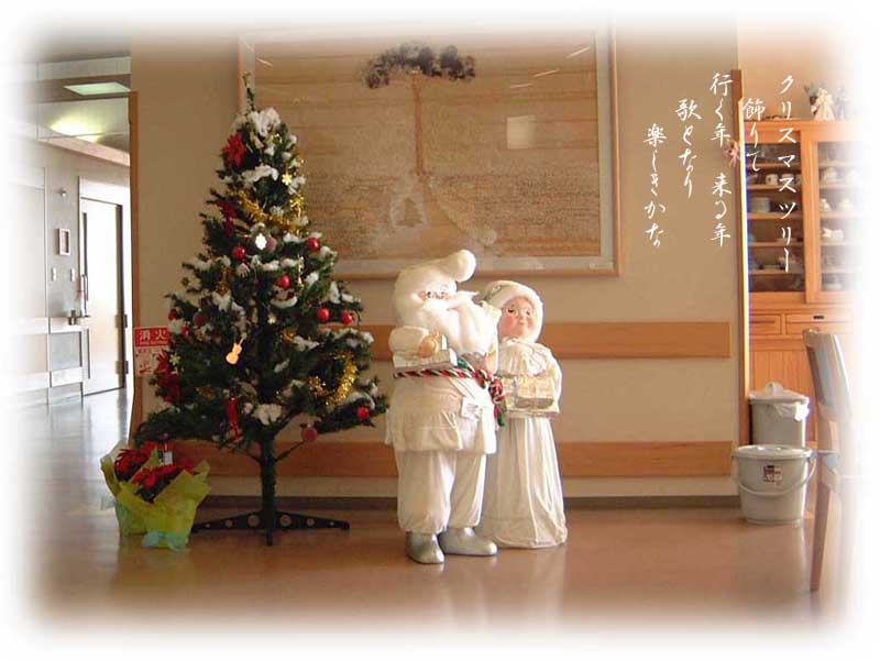 ![]() クリスマスイブには、母の病室に集まり家族全員でクリスマスケーキを切るはずになっていましたが、孫が風邪をひき急遽中止することになってしまいました。家でのささやかなホームパーティの後、私は、母の分に残したケーキを持って病室を訪れ、母と二人だけのクリスマスイブになりました。もう殆ど食事が通らなくなっていた母でしたが、持って行ったケーキを美味しそうに全部食べてしまいました。 上の写真は、ホスピスののロビーに飾られていたクリスマスツリーと、母の手帳の最後のページに書かれていた歌です。残された者たちへの優しい思いやりがこめられているような気がします。母は、折々に感じたことを歌にして書きとめていました。定型的な歌にはなっていませんが、母の心が伝わってきます。この歌の二週間後に母は静かに旅立ちました。 今年も、何時ものようにクリスマスツリーを飾った孫たちの部屋でささやかなクリスマス家族パーティを開きました。母は、幸せそうな家族団欒の様子を見て、空の彼方から優しく微笑みかけていてくれるような気がします。