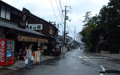 鳥居前の土産屋で糸切餅を買い、遅めの昼食に延命蕎麦を食べました。 お参りも終わり時計を見ると1時少し過ぎ。来るときは小牧ICから彦根ICまで名神高速道路を一直線。約1時間少々で着いてしまいました。帰りも同じ道では面白くありません。 夕方までに家に着けばいいのですから時間はたっぷりあります。これもまた思いつきでお千代保稲荷に寄ることにしました。