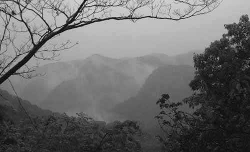 兎に角、行ってみようと出発しました。県道とはいえ細く曲がりくねった道、日曜日の雨の午後と言うこともあってかすれ違う車も殆どなく少し心細くさえなってきます。冬場は積雪のため閉鎖されるのでしょう途中で道路を塞ぐ鉄扉がありました。山の高度が上がるに従って雲の中に入ってしまうのでしょうか時には数メートル先まで位しか見えないこともありました。 峠の頂上近くまで上ると、時々開く雲間から見える峰々の眺めは正に絶景でした。立ち上る霧を通して幾重にも重なり遠くに霞んでゆく山の眺めは、丁度水墨画を見ているようで思わず何枚もカメラのシャッターを押してしまいました。 2時間少々で無事山越えを終わりお千代保稲荷着。金山寺味噌と野菜の収穫の時に都合のいい竹篭を買い、午後5時半無事帰宅しました。 気温の変わりやすいこの時期、皆さんもお体には十分気をつけお過ごし下さい。