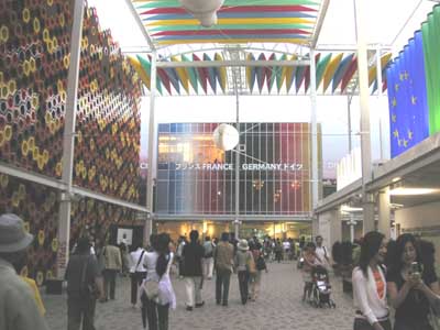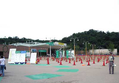 吹田の大阪万博は、日帰りで1回、筑波の科学万博は、2泊3日で1回。皆1回行ったのみですが、今回は、何度行っても然程気にならない。なにしろ、会場までの交通が至極便利だと言うことが一番の理由のような気がします。 万博専用駐車場は、名古屋空港の駐車場が利用されていて、私の家から車でわずか10分。空港の総合カウンターでは、万博の入場券が買えるし、名古屋空港から万博会場までは全て高速道路経由で、空いていれば20分で着いてしまう。家を出て30分後には、もう万博会場に居ることになる。帰りもこの調子だから然程気にならない。 私の万博見物は、ウイークデイの真ん中、つまり水曜日か木曜日で雨の日、それも混雑を避けて昼少し前に家を出ることに決めている。 6月22日水曜日、朝起きた時には雨が降っていた。正に万博日和。午前中に歯医者の予約がしてあったので、治療を終え11時少し過ぎに家内と一緒に家を出た。何時ものように途中で昼食のサンドイッチとお茶を買い、シャトルバスの中で昼食を済ませ会場着。 今日のバスは、今までよりお客さんが多く座席は半分ほどうまっていた。でも、東ゲートは、何時もと同じがらがら。