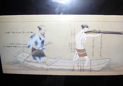 ポルトガル館に展示してあった絵。日本へ初めて火縄銃を伝えたポルトガル。日本とポルトガルの歴史的つながりについての展示物も多かった。