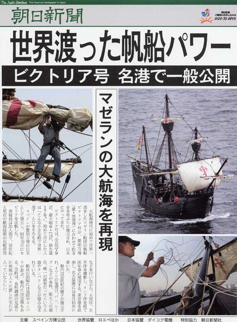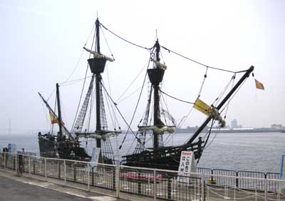 同じ埠頭で万博の「スペイン館洋上パビリオン ビクトリア号」が係留されていた。500年前にマゼランが初めての世界一周航海した時の船を万博のため忠実に復元したものだそうだ。実際に日本まで航海してきた500年前の船を見ることなどそうざらには無い経験だった。