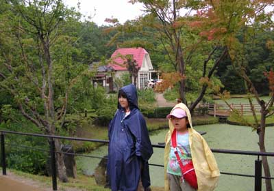 「となりのトトロ」のサツキとメイの家を見に日本庭園まで歩く。上の孫は、サツキになりきっていた時期があった。