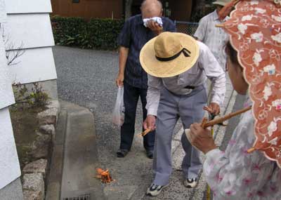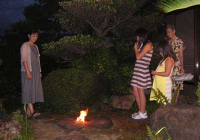 今年は、父の初盆。新仏が道に迷わないようにと組の人達が総出で墓から家までの道筋に迎え火を焚いてくれました。 精霊棚に並べられた位牌も母の戒名の横に父の戒名が新しく書き加えられました。 「盆と正月一緒に来たよな」と一時流行った歌にもあったように、昔はお盆と言うと大忙しの時期でしたが、最近では、核家族化のせいでしょうか仏壇の無い家が増えたり、お盆の行事が簡略化されたりして、お盆と言えば夏休みと言うイメージが普通になってしまいました。 我家のお盆も、昔からの慣わしを引継いでお精霊様の日々のお膳を準備する家内だけが忙しそうに動き回っているだけで、あとは、正に夏休み。お盆の行事には、全く興味なし。