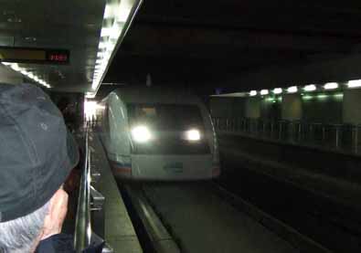 浦東国際空港から龍陽路までは、リニアモーターカーで。時速400km以上出るそうですがこの日は300km前後で走っていました。