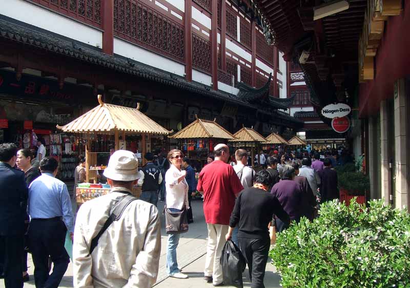 上海の浅草と言われる豫園商場、通りには、屋台店が並び世界中からの観光客で賑わっている。