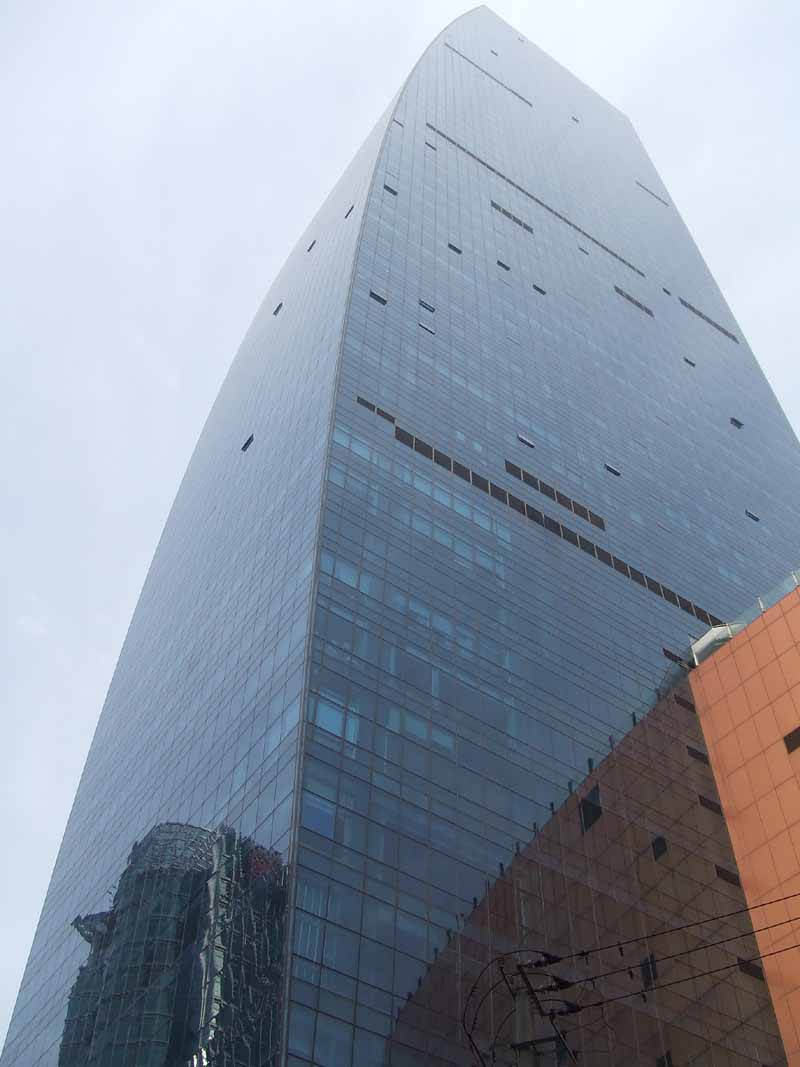 Marriott系のルネッサンス上海中山公園ホテル。地上60階建て、相当遠くまで行かないとホテルの全景が納まらない。