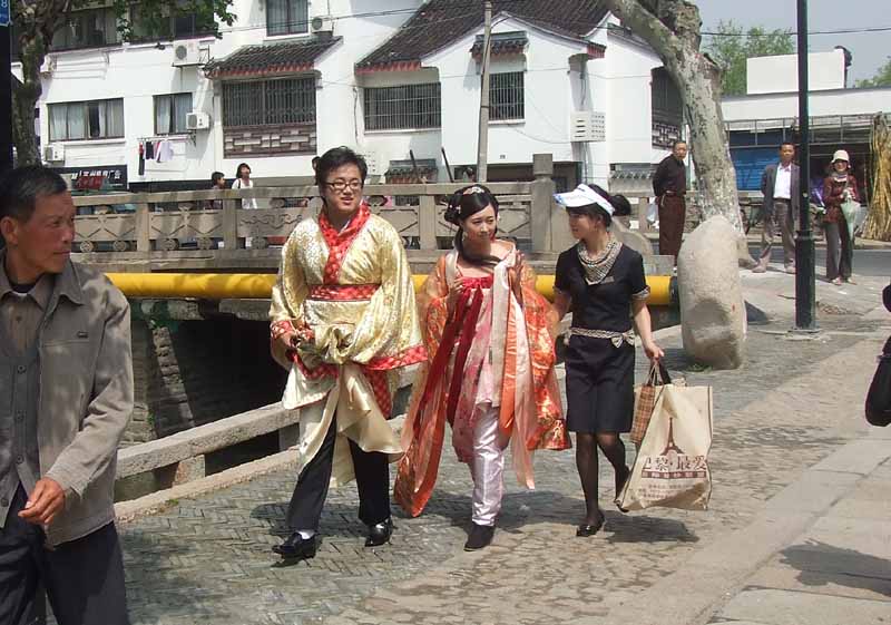 石畳の街並を復元した平江街保護区。散策中に結婚式途中の新婚夫婦に出会った。