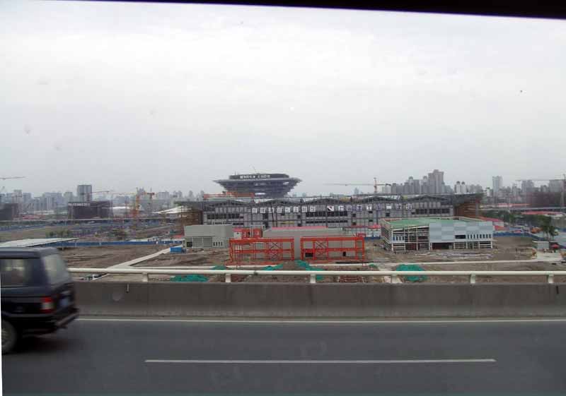来年(2010年)開催の上海万博会場の工事が急ピッチで進んでいた。