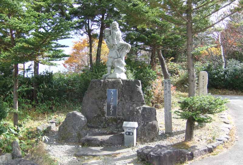 野麦峠。『あゝ飛騨が見える』と言い残して死亡した政井みねと兄の像。