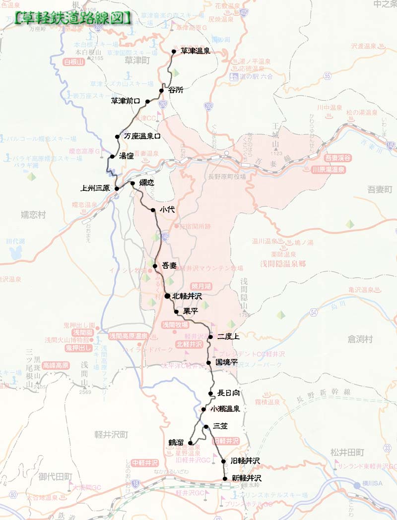 大正元(1912)年10月に設立された草津軽便鉄道は、大正4(1915)年に、新軽井沢〜小瀬温泉間が開業。大正15(1926)年8月に、草津温泉駅までの全線が開通しました。北軽井沢駅は、大正7(1918)年6月に「地蔵川」駅として開業しましたが、その後大学村の人達により駅舎が新築、寄贈され全線開通の翌年(1927年)に「北軽井沢」駅と改称されました。この北軽井沢駅は、日本初のカラー映画、『カルメン故郷に帰る』のロケ地にもなり風光明媚な土地として有名になりましたが、昭和34年の台風7号による吾妻川の橋梁流失、軽井沢の車庫全壊等の被害が致命的なひきがねとなり、草軽電鉄(1925年に社名変更)は、昭和37(1962)年に全線廃業に追い込まれ北軽井沢駅もその使命を終えることになりました。数年前までは法政大学OBにより喫茶店として利用されていたそうです。駅舎は、今日も建設当時の完全な姿で残されており平成18(2006)年9月15日に国の登録有形文化財に登録するよう答申されました。この北軽井沢という名前の由来は、地蔵川と呼ばれていた地域に法政大学の職員により避暑地が作られた際、軽井沢の北にあることから「北軽井沢」と呼んだのが始まりであると言われています。この地名は、草軽電鉄が廃止された後も便宜的な地名として定着していましたが昭和61年に長野原町南部地域(10区)が長野原町大字北軽井沢となり正式な地名となりました。また、一般に別荘地を包括して北軽井沢と呼ぶ場合、嬬恋村南部を含む広大な地域が含まれていると解釈した方が適切かも知れません。