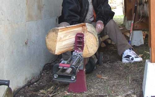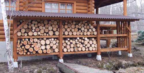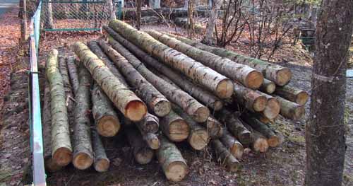 先ず最初に直面したのは、どうやって薪材を手に入れるかと言う問題です。それも、薪に適した木材をできるだけ安いコストで手に入れたいとなるとなかなか難しく並みの工夫や対応策ではできません。薪材の安定した入手方法は未だ無く、常に薪材探しを心がけていなければならないのが現状です。森に囲まれた山荘で暮らしながら木を探すなんて洒落にもなりません。でも、薪材の入手方法をいろいろ考えるのも結構楽しいものです。 もう一つの問題点は、齢70を越す私の体力の問題です。 当初、私は、薪の使用量を非常にあまく見ており、友人がプレゼントしてくれた薪割斧(よき)でぼちぼちと割る積もりでいました。事実、最初に作った薪小屋(第10話参照)で2年分の薪が保存できる計算をしていました。 ところが、冬に入り薪を使い始めると、私が予想していた量をはるかに超える薪が必要なことが分かり、私の薪作り計画は根底から変更せざるを得ないことになりました。 私の体力では、大量の薪を斧で割るような芸当はとても無理。思案の末、薪割機の購入を決断しました。 ストーブ販売店で頂いたカタログを見ると全て輸入品。電動式が20数万円、エンジンの付いたものですと30数万円から50万円以上の価格がついていました。 でも、インターネットのオンラインショップやホームセンターの店頭では5万円以下の薪割機が幾種類も販売されています。 いろいろ耳にする話では、安い薪割機では駄目との話が多く迷いましたが、使ってみなければ分からないし、うわさ通りであったとしてもまあまあ納得できる価格であると、ホームセンターに並んでいた破砕力4tのナカトミ電動油圧式薪割機 LS-52H を \39,800 で購入しました。 この機械太い丸太をバリバリ割って私を大喜びさせてくれました。薪割機で割るといっても素直な玉木ばかりではありません。節の多い物、太い物、曲がった物、玉木にもいろいろ癖があり、その癖に会わせた使い方が必要です。現在までに大よそ5トン近くの薪を割りましたが何の異常も無く至極順調に働いていてくれます。 ストーブに薪を焚く日も少なくなった5月中旬のある日、私が薪を割っているところを、北軽に別荘を構えて9年とおっしゃる年配の方が通り掛かられ、しばらく見ておられましたがぽつりと 「大変ですね。定住されている方ですと、半月でこれくらいの量が無くなるようですから。」 といともあっさりおっしゃった。 「えっ ???」 私は、返す言葉が見付かりませんでした。 その時、私は3トンの薪材を略割り終えて、薪棚は右最下段の写真の状態になっていました。 この方の言われた量は、多少オーバーであったかも知れませんが、私が頭の中で計算していた量よりはるかに沢山の薪が必要なことは間違い無さそうです。事実、今年の冬はこの写真の倍以上の薪を消費しました。私の使っている薪は、火持ちの悪い薪材が多いせいかも知れません。薪は、2年くらい乾燥させる必要があるとのことですから、乾燥期間を入れると3年分の薪が常時薪棚に積まれていることになります。私の両方の薪棚を満杯にするにはまだこの倍の薪を作らなければなりませんが、それでも未だ不足と言う勘定になります。私の薪作り計画は、またもや大幅な修正を迫られています。何か、何時も薪のことばかり考えているような昨今ですが、またそれが楽しいから不思議です。先ずは薪棚が一杯になるよう頑張らなければ。