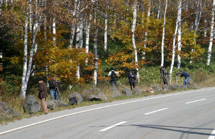 私は、美しく彩られた遠景に興味があったが、この人達は、三脚にカメラを固定して森の中に向かって焦点を合わせていた。