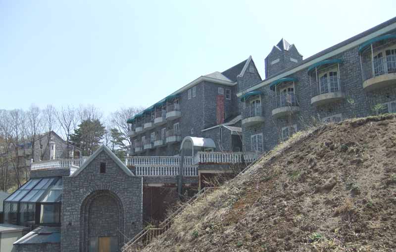 再開発に当たって解体される予定のホテルは、回りの景色にしっくりと溶け込んだ欧風の洒落た建物。壊すのが惜しいような気がします。後々の思い出のために写真を写してきました。