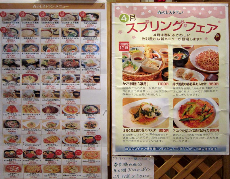 食事処の前に貼ってあったメニュー。