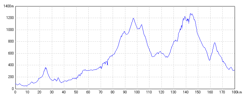 | 水平距離 | 179.48km | 沿面距離 | 180.16km |