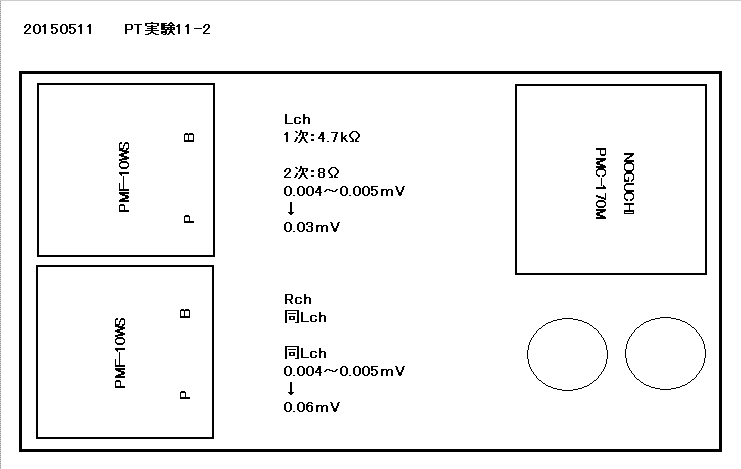PT実験8-1は良く見る配置で、前作以外でも試したことがございます。しかし、PTに近い側はど~しても誘導ハムが大きい。PTを中央に置く左右対称配置なら左右揃いますが、等しく“近い”ってのは?・・・
