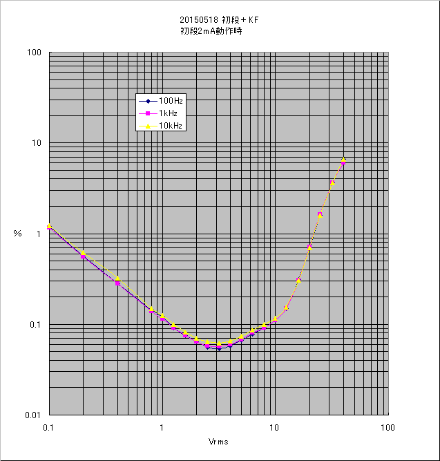 3種周波数間格差は、チョイ接近。100Hzの低レベル歪み率の改善は見えた。打ち消しナシなら3本重なるかと思います。