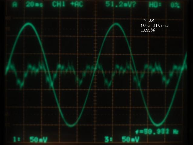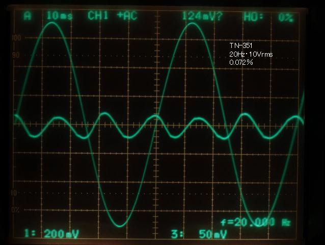 10Hz以下で歪みが目立つかな?と危惧してましたが、レスポンスの低下はともかく意外にもマトモ。TN-351で見たような「ゲッソリとやつれた」波形に到りません。もっと高レベルも調べたいが、後回し。