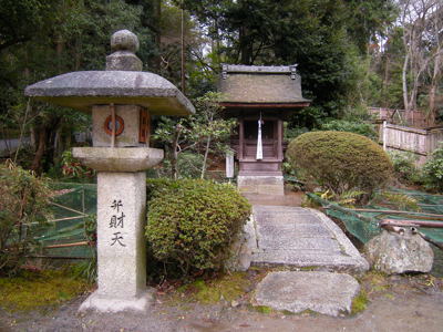 天智天皇、天武天皇、持統天皇が産湯に用いたという霊泉。三井寺の名の起こり。「閼伽」とは功徳の水、霊地の水の意。今もこんこんと湧き出ている。 |
