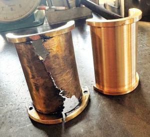 印刷機のローラー用軸受けを砲金で新規作成いたしました。