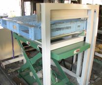 装置概要パレットを段積みし規定枚数に達すると排出する装置です。リフターの上端に搬入コンベア、下端に傾斜コンベアが設置されます。本装置は積み下げ式ストックタイプですが、積み上げ式・供給タイプなどどんなタイプのパレットマガジンもも製作可能です。