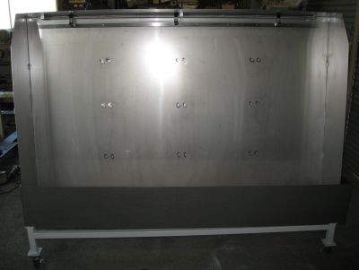 装置概要 印刷機の印版を洗浄するステンレス製のパンです。 上部の金具で印版をクリップし吊り下げて印版を洗浄します。 下部のパンにはゆるやかなスロープが付いていて排水の際の水切れをよくします。 お客様のご要望サイズで製作いたします