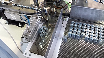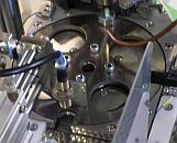 メッキ後部品のおねじとめねじを同時にさらえる装置です。 ねじさらえには明友エァマチック社のタップマチックを使用により2条ネジ防止、自動調芯、逆転機構を実現しています。モータ1台、正転のみでタップとダイスを回転させるシンプルな構成で確実性の高いネジさらえが可能です。