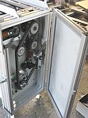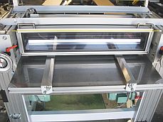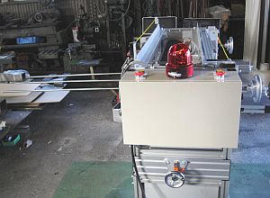 装置概要 ダンボールのシートに糊を付ける装置です。 シートの表面全体に均一に糊を付けることができます。 通すダンボールシートの厚みや糊付けの量をハンドルで調整可能です。 安全のため黄色のワイヤーに触れると機械が停止します。 この装置は最大800mmまでのシートを通せます。 ご要望に応じた糊付け装置を製作いたします。