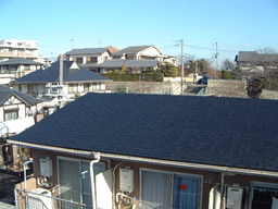 北側の屋根は、太陽の日差しが弱くコケが生えやすくなっています。