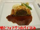 フォアグラのパイ包み焼き、デザート2品(レモンのプリンと黒ゴマのババロワココナッツ風