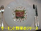 が、前菜のサーモンと野菜のテリーヌに始まり、魚料理のエイのムニエル、肉料理の鴨肉と