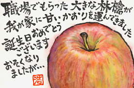 12/3 職場で大きな林檎をいただき,そのうちの一つを家に持ち帰りました。たった一つの林檎ですが,甘い香りが部屋に広がりました。妻の母親の誕生日祝いとして・・・。
