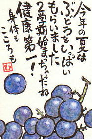 9月 敬老の日に妻の両親宛に2枚組のブドウをかきました。